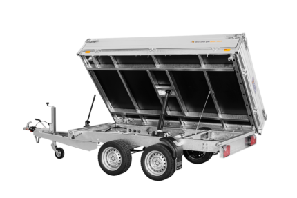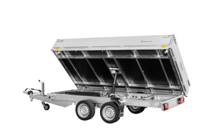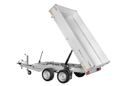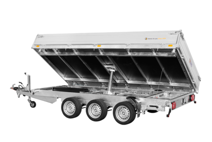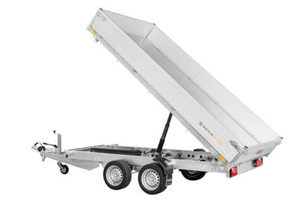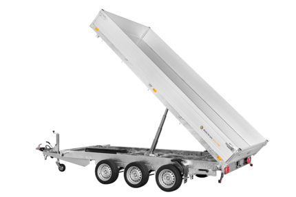 Gesamtgewicht: 3.500 kg Leergewicht: 820 kg Kasteninnenmaß: 305 x 178 x 30 cm Dreiseiten-Kipper mit elektrischer Pumpe, Stahlboden und Alubordwänden mit Spannverschlüssen