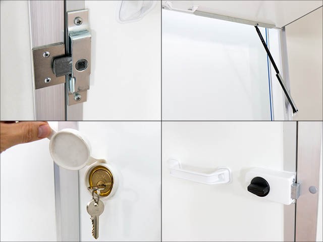 – Verkaufsklappe rechts, mit Gasfederstützen und Zusatzsicherung
