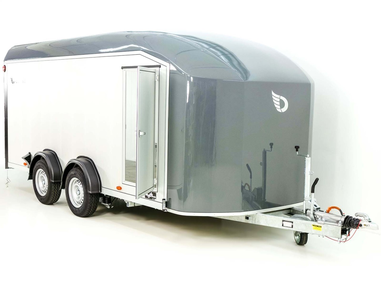 – Pullman V2 | Gefedert mit Schraubfeder und Stoßdämpfer | V-Deichsel mit Zugkugelkupplung | Automatik-Schwerlaststützrad