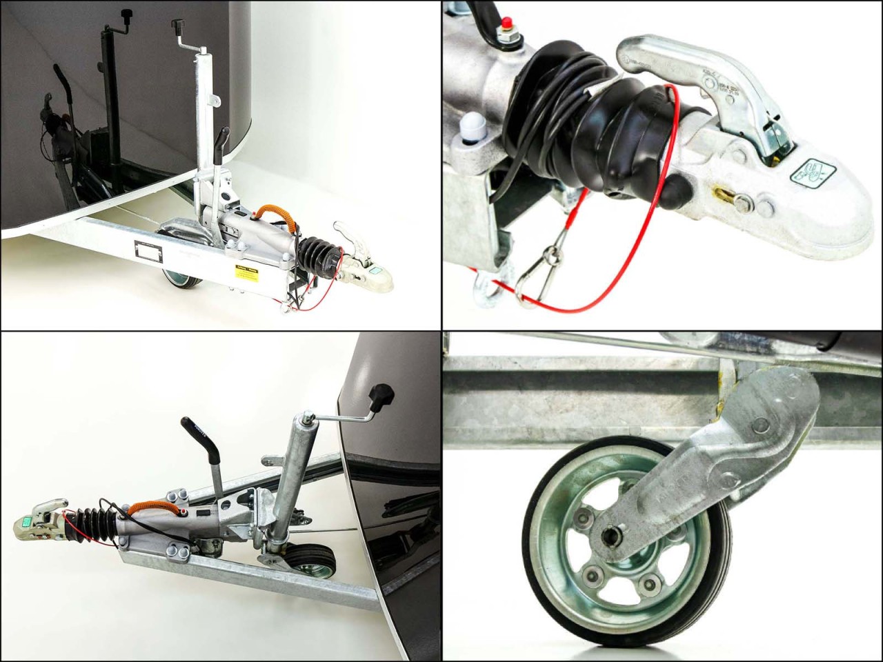 – Pullman V2 | Gefedert mit Schraubfeder und Stoßdämpfer | V-Deichsel mit Zugkugelkupplung | Automatik-Schwerlaststützrad