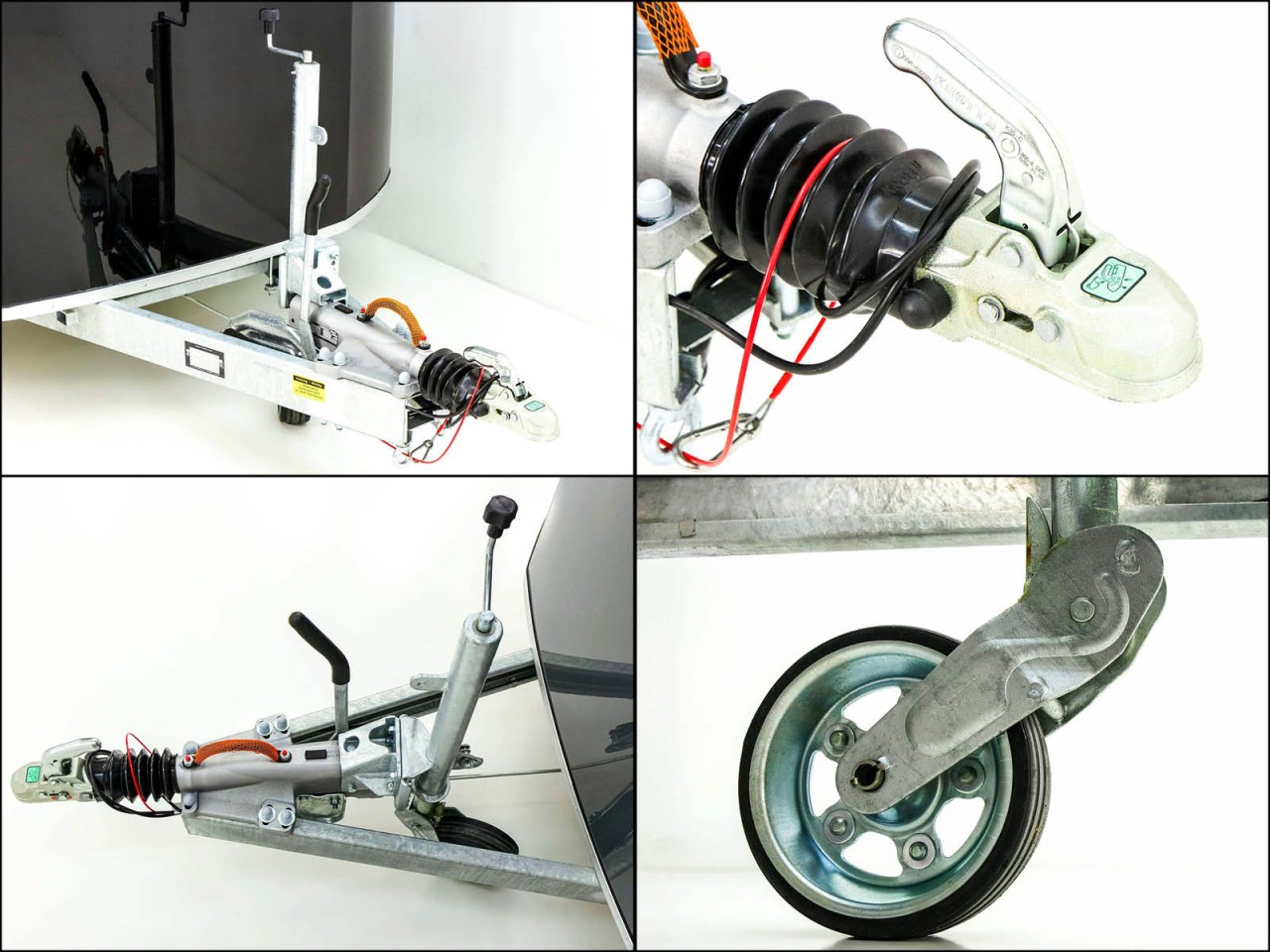 – Pullman V2 | Gefedert mit Schraubfeder und Stoßdämpfer | V-Deichsel mit Zugkugelkupplung | Automatik-Schwerlaststützrad