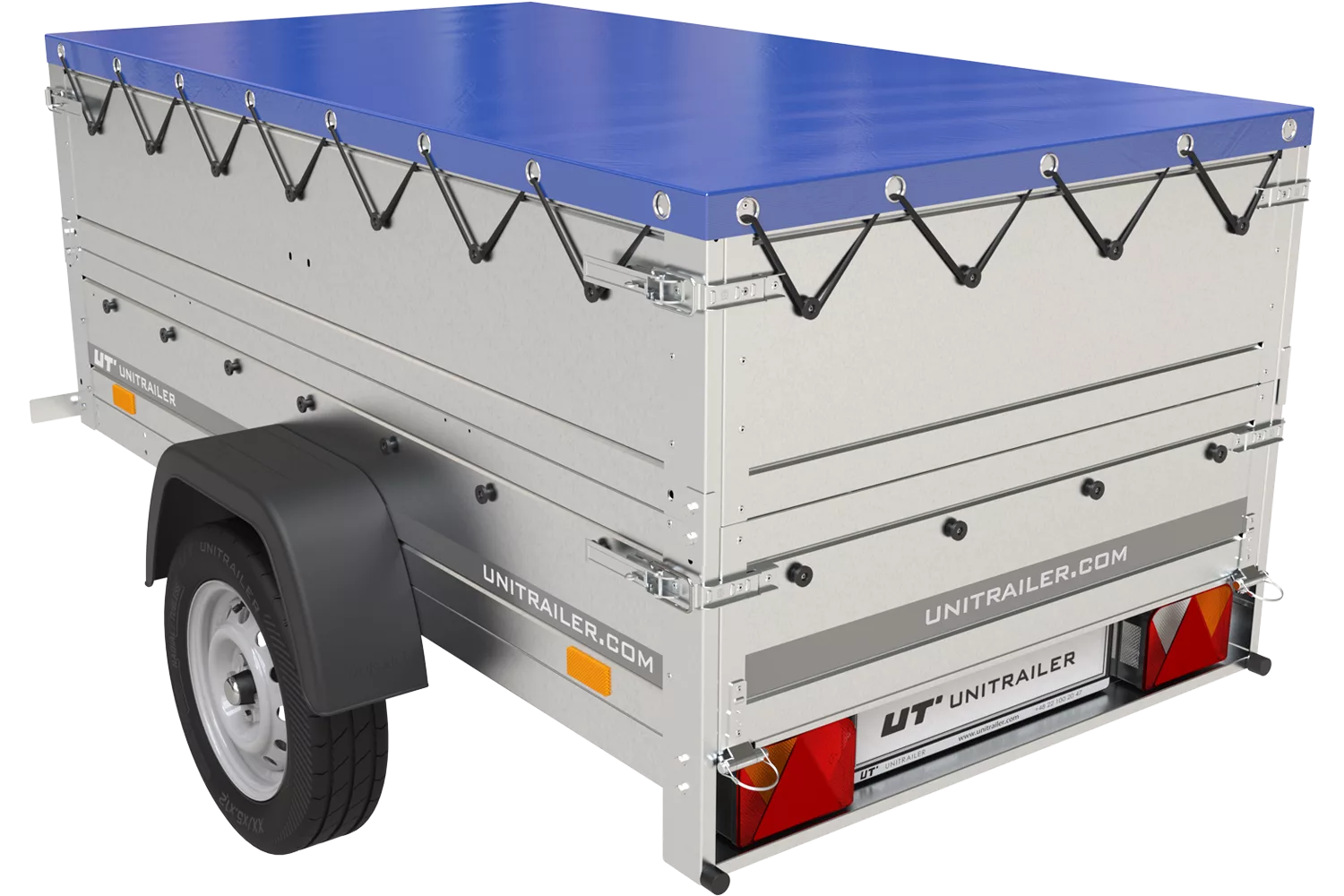 Die solide Konstruktion des Autoanhängers wird durch die Verwendung hochwertigster Materialien und Teile namhafter europäischer Hersteller gewährleistet. Dies bedeutet nicht nur Sicherheit, sondern auch Langlebigkeit. Dank seiner Kapazität können Sie mit diesem Anhänger mehr Güter transportieren, was zu Zeit- und Kosteneinsparungen beim Transport führt. Zusätzliche Seiten schützen die Ladung vor Witterungseinflüssen wie Regen, Schnee oder Wind. Wir empfehlen dieses Modell vor allem dann, wenn Ihnen die Stabilität beim Transport von losen oder losen Materialien am Herzen liegt. Die Plane und die beiden Seiten verhindern, dass sie herausfallen und unterwegs verstreut werden. Die kippbare Deichsel erleichtert das Be- und Entladen.