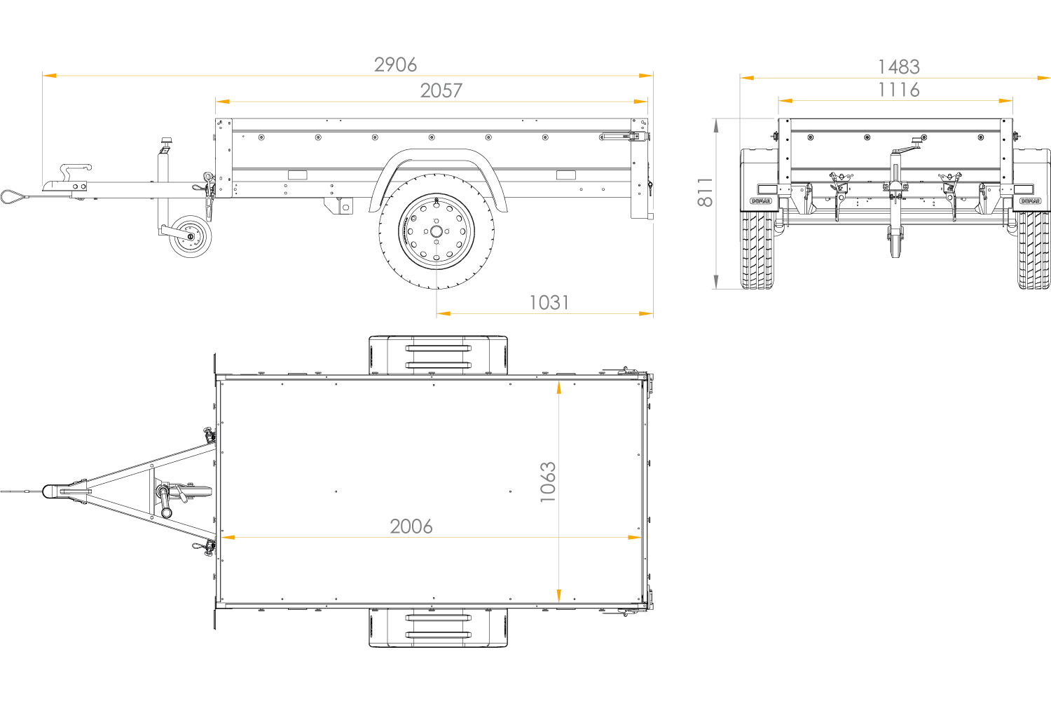 - FAHRGESTELL – Lenkachse eines anerkannten Herstellers ALKO oder Knott – Reifen mit der Dimension 155/70 R13 sorgen für hervorragenden Grip und Fahrkomfort. Die kippbare Deichsel vom Typ „V“ ermöglicht das Zusammenklappen unter den Boden des Anhängers, was die Lagerung und das Manövrieren erleichtert.