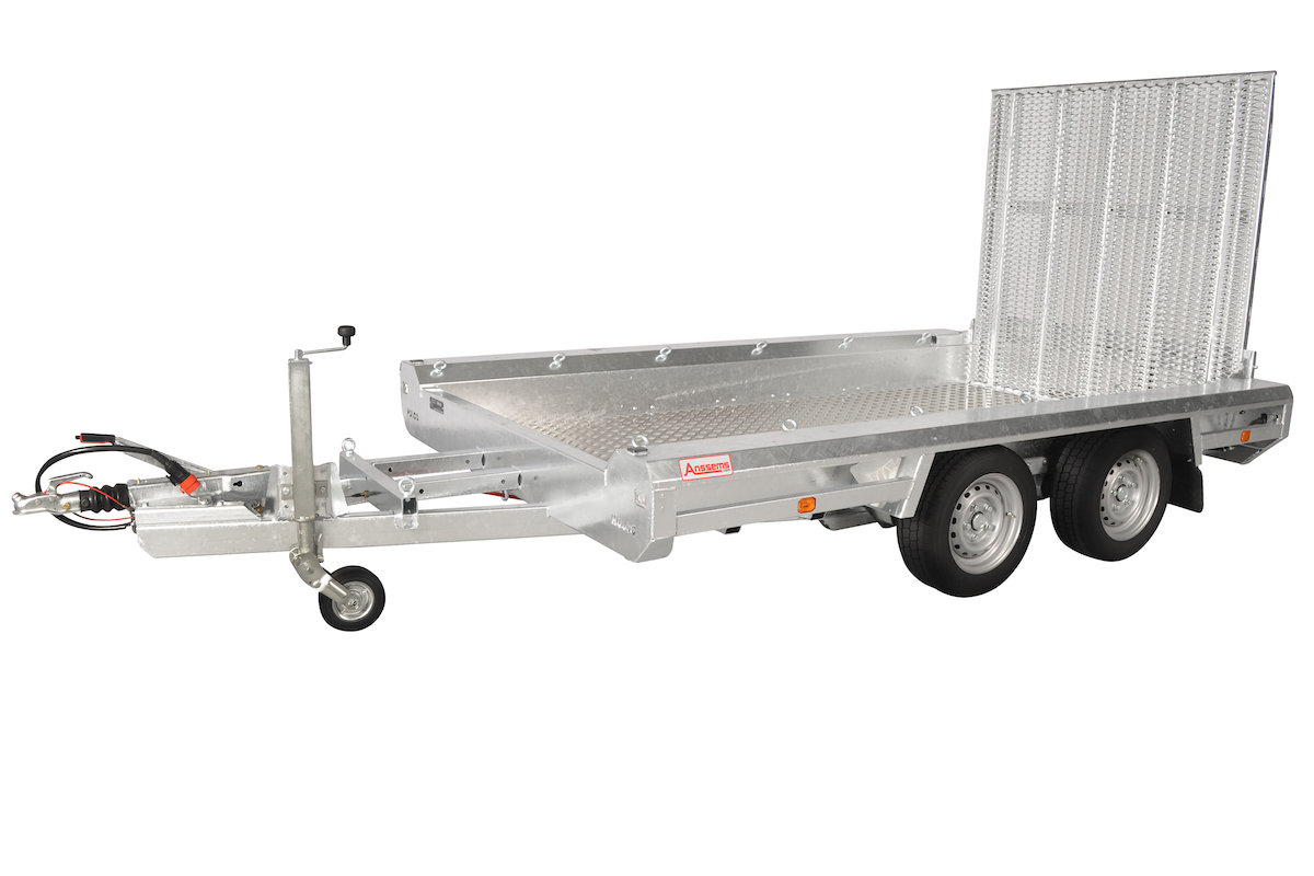 Der ANSSEMS TERRAX Basic ist ein robuster und funktioneller Minibaggertransporter. Die Basis bildet ein starkes und stabiles geschweißtes Fahrgestell. Die niedrige Ladeflächenhöhe und eine lange, stabile Auffahrklappe gewährleisten einen kleinen Auffahrwinkel. Serienmäßig ausgestattet mit Boden aus Alupofil, Auffahrklappe (100 cm) über komplette Breite mit Torsionsfedern und integriertem Stützbügel, Schaufelablage, 14 Bindeösen, integrierter Seitenbeleuchtung und Automatikstützrad.