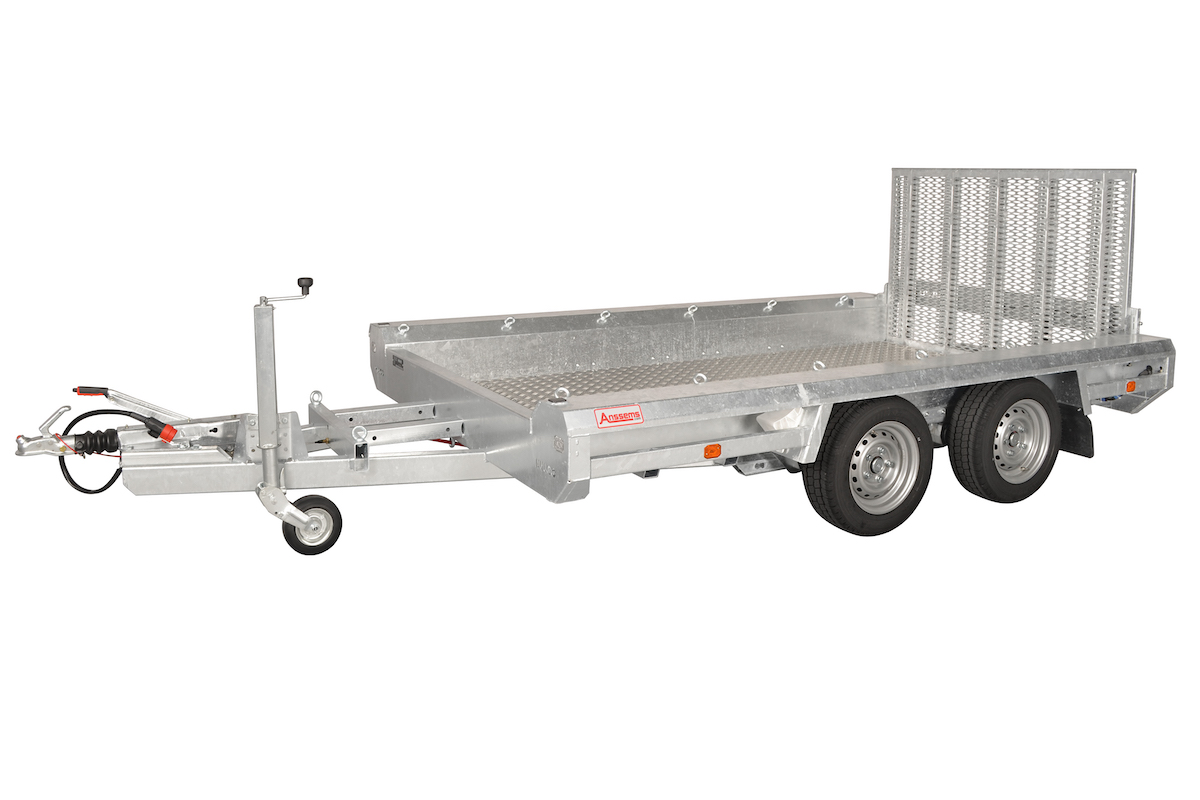 Der ANSSEMS TERRAX Basic ist ein robuster und funktioneller Minibaggertransporter. Die Basis bildet ein starkes und stabiles geschweißtes Fahrgestell. Die niedrige Ladeflächenhöhe und eine lange, stabile Auffahrklappe gewährleisten einen kleinen Auffahrwinkel. Serienmäßig ausgestattet mit Boden aus Alupofil, Auffahrklappe (100 cm) über komplette Breite mit Torsionsfedern und integriertem Stützbügel, Schaufelablage, 14 Bindeösen, integrierter Seitenbeleuchtung und Automatikstützrad.