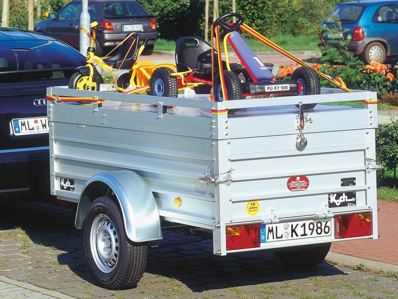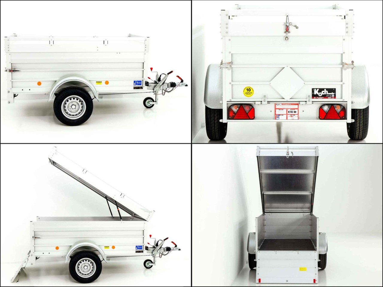 PKW-Anhänger mit Deckel Typ 2.10 mit einem Lademaß 105 x 205 x 64cm. Leichter Aluminium-Anhänger mit zuläßigem Gesamtgewicht von 1000kg und einer Nutzlast von 840kg inklusive 10 Jahren Garantie. Koch-Anhängerwerke fertigt seit über 30 Jahren Qualitätsanhänger made in Germany.